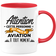 quotedazur - Mug Attention This Person Can Talk About Aviation At Any Time - Sport Humor Gift - Original Gift Idea - Aviation Mug - Ideal For Birthday Or Christmas