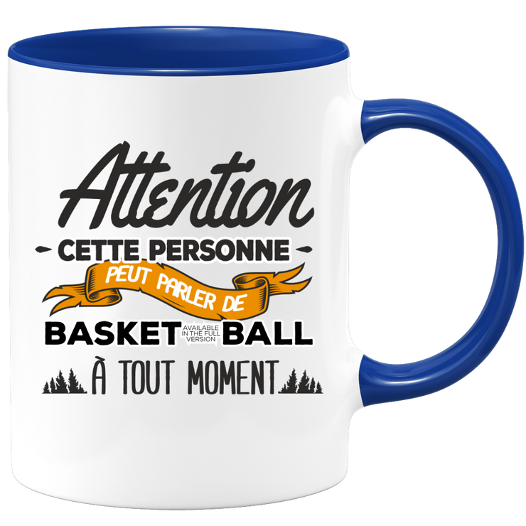 quotedazur - Mug Attention This Person Can Talk About Basketball At Any Time - Sport Humor Gift - Original Gift Idea Basketball Player - Basketball Mug - Ideal For Birthday Or Christmas